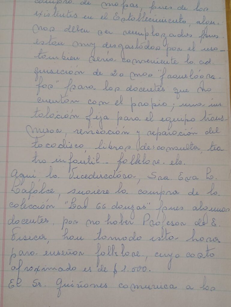 Según el libro de Actas de la Asociación Cooperadora del año ’65 las docentes le plantean al Sr. Director enseñar folclore, ya que no contaban con horas de Educación Física. Una manera de que los alumnos estuvieran en movimiento… sin pensar que esa inquietud llegaría tan lejos!!!